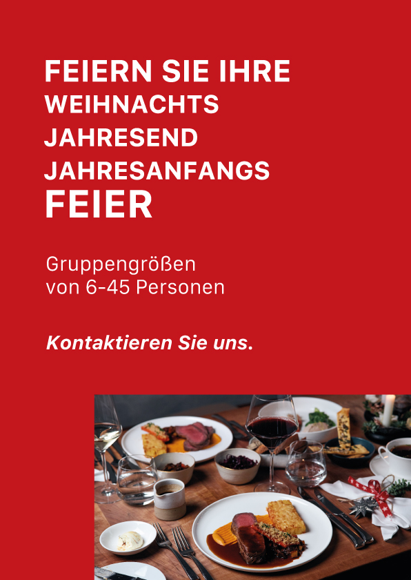 Feiern Sie Ihre Weihnachs- Jahresend- Jahresanfangs- FEIER in einem unvergesslichen Rahmen. Wir freuen uns über Gruppengrößen von 6-45 Personen Vom klassischen 4 Gang Menü bis hin zu einem „Rund-Um-Programm“ mit Aperitiv, 5 Gang-Menü und Rahmenprogramm Sprechen Sie uns an und wir planen Ihrer individuelle Feier.